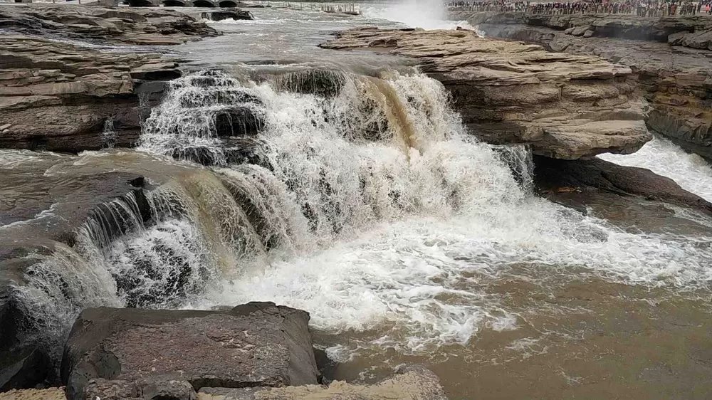 春季,為瀑布落凌期,河道里冰層斷裂,“壺口”內(nèi)冰凌墜落。夏季,由于壺口以上水流的變化,出現(xiàn)3條叉流,壺口附近形成3個主要瀑布:一個位于龍槽頂端,落差約10米;另外兩個分別從龍槽西岸和東岸跌入龍槽,落差分別為15米和7米。這種觀察常常在不斷的變化著,有時大雨后,槽端滿溢,還會形成多股瀑布。秋季,紅葉夾岸,瀑布高懸30余米,水簾掛入云端,景色壯觀。冬季,秦晉長峽冰封雪凍,不少河段成為天然冰橋,往日飛瀑高懸處,掛滿冰凌。
