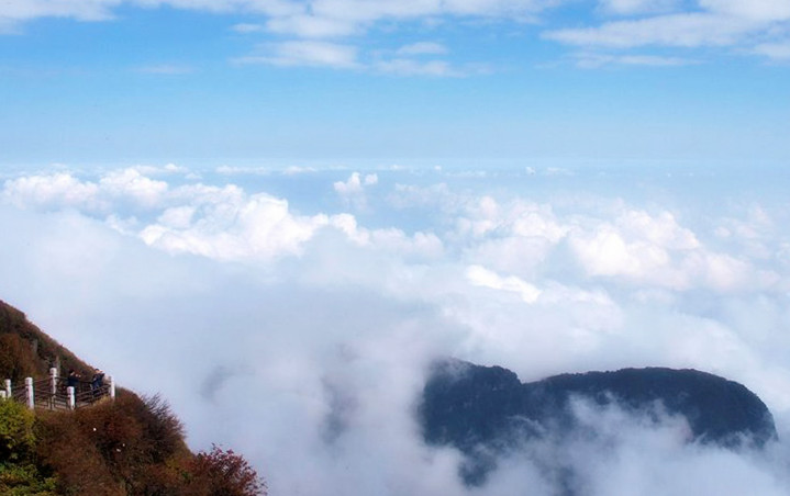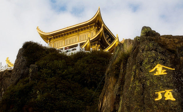 峨眉山主峰金頂絕壁凌空,有世界最高的金佛——四面十方普賢;世界最大的金屬建筑群,金殿、銀殿、銅殿氣勢雄偉;世界最壯麗的自然觀景臺,可觀云海、日出、佛光、圣燈、金殿、金佛六大奇觀。